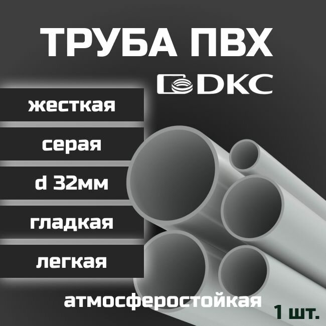 Труба ПВХ DKC гладкая, жесткая, легкая d32мм атмосферостойкая L1000 1шт. информация: