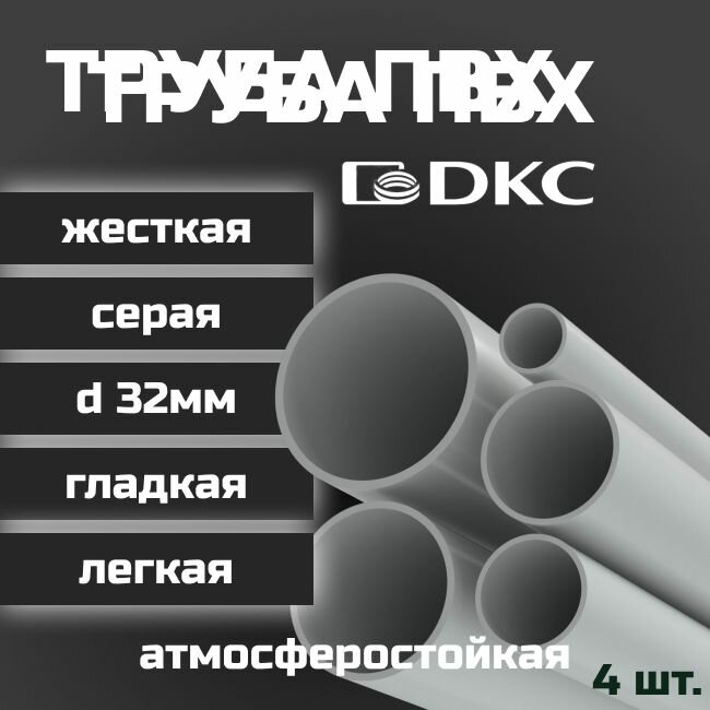 Труба ПВХ DKC гладкая, жесткая, легкая d32мм атмосферостойкая L1000 4шт. информация: