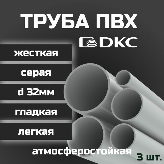Труба ПВХ DKC гладкая, жесткая, легкая d32мм атмосферостойкая L1000 3шт. информация: