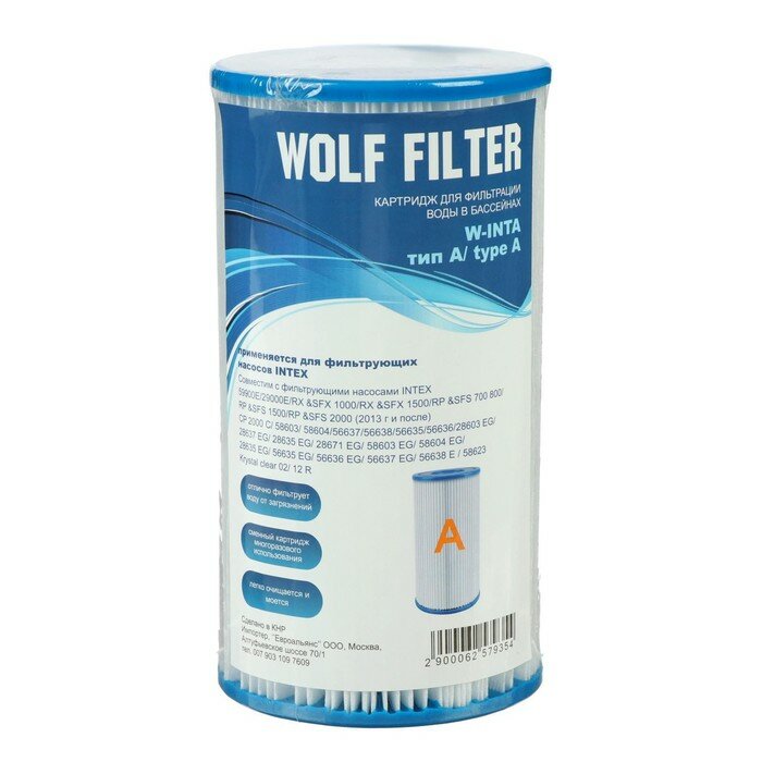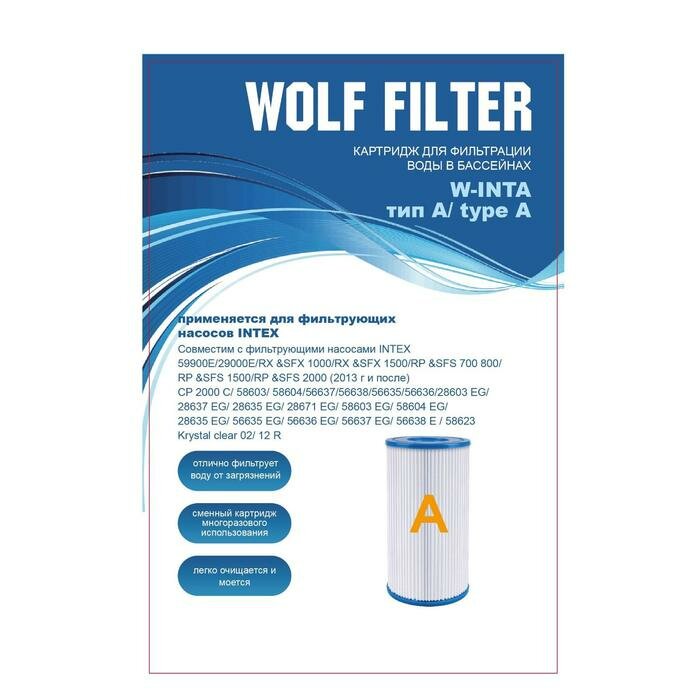 WOLF FILTER Картридж для очистки воды в бассейнах для фильтрующих насосов INTEX, тип А, 1 шт. информация: