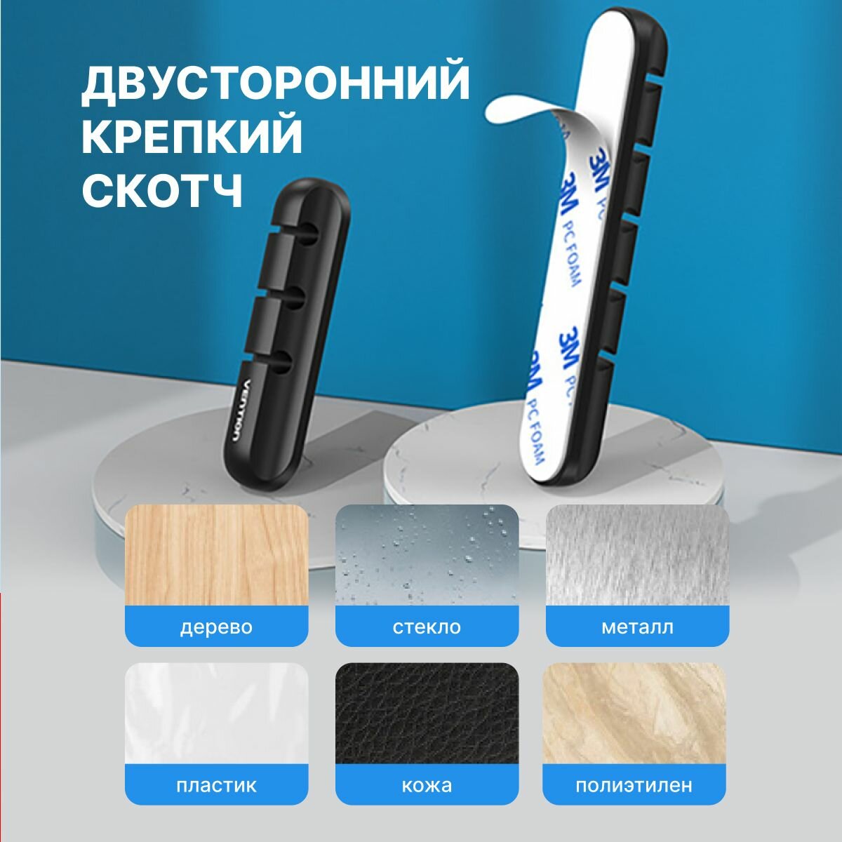 Отзывы на Держатель для проводов, органайзер для кабелей на 5 разъемов, Vention крепление для кабелей гибкий на скотче арт. KBRB0