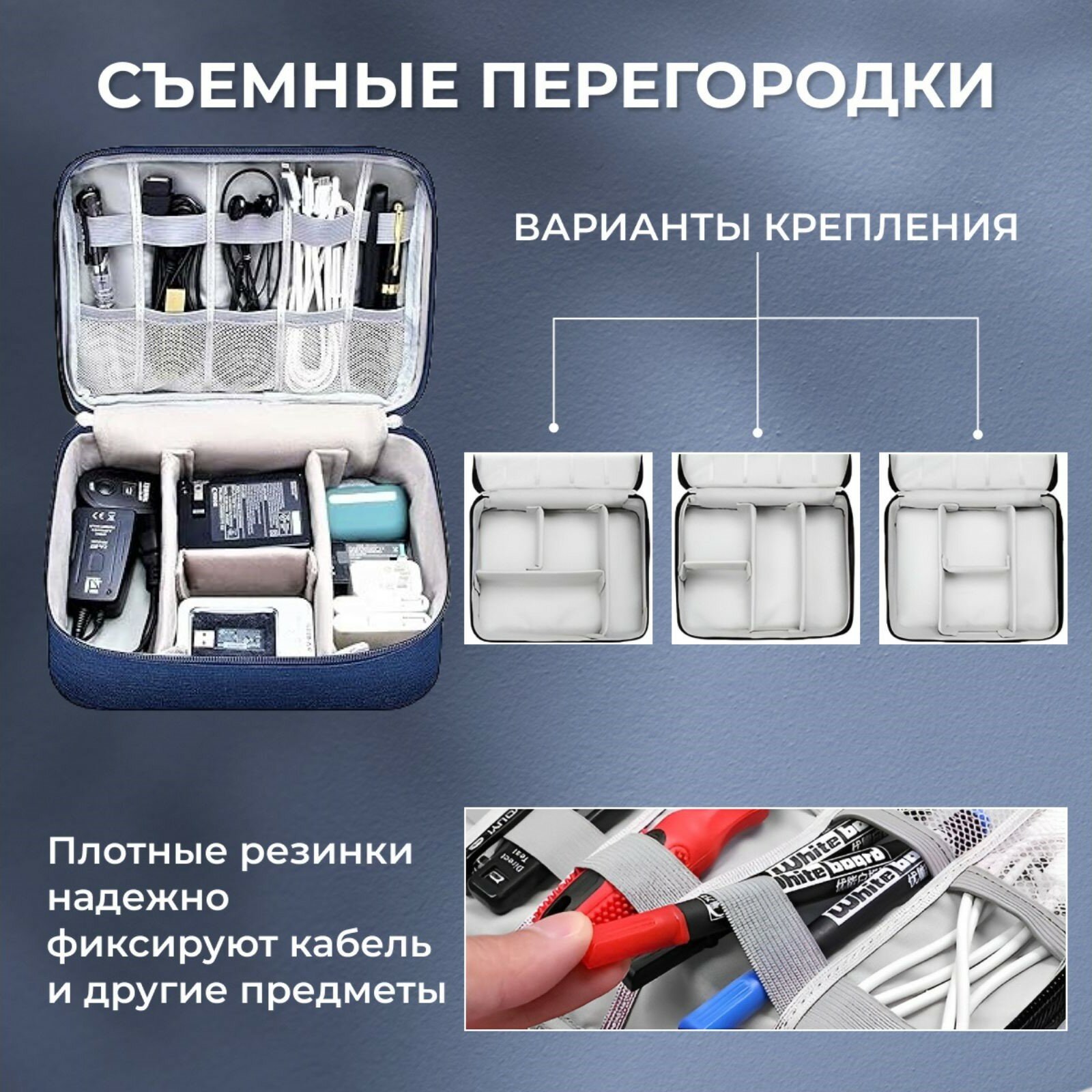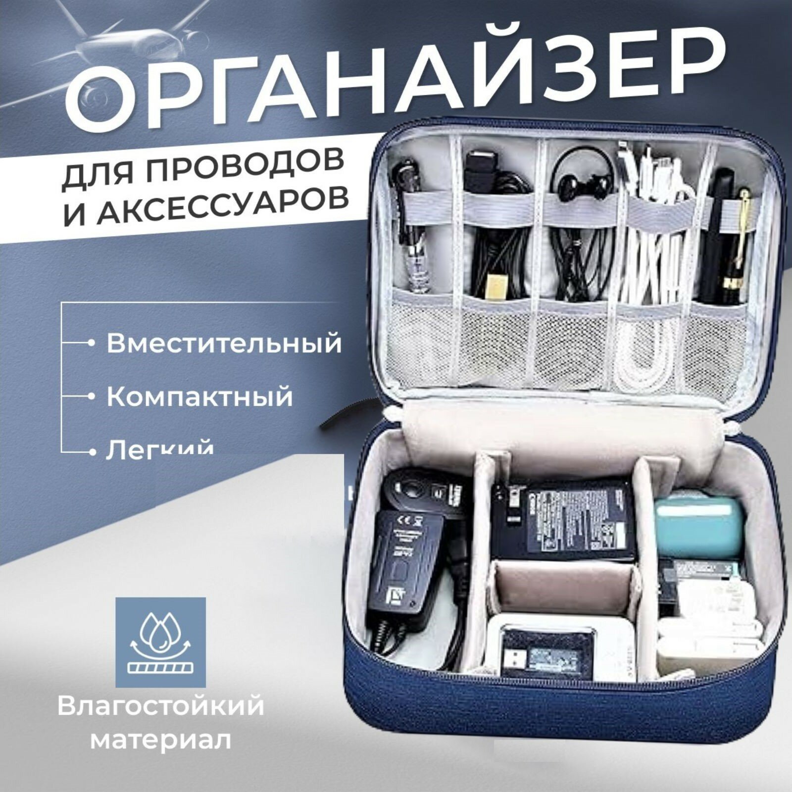 10 цен на Органайзер для хранения проводов, кабелей, аксессуаров и мелочей дома или в дороге, синий