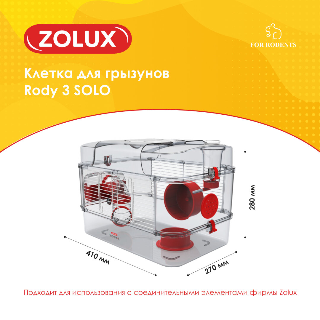 Клетка для грызунов "Rody 3 Solo", рубиново-красная, 410х270х280 мм ZOLUX информация:
