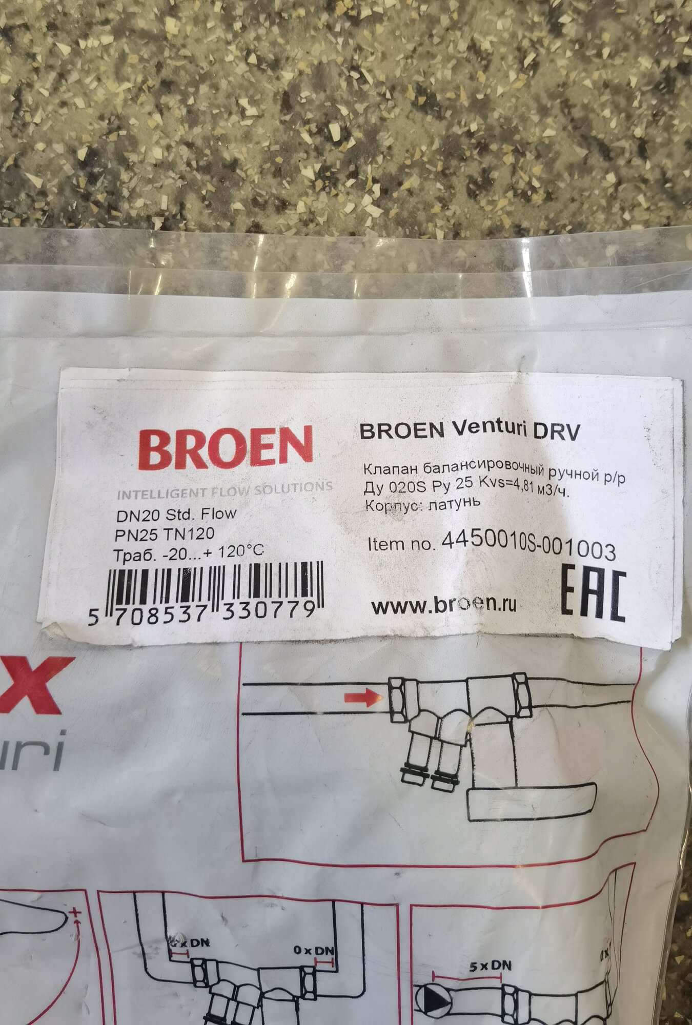 Отзывы на Балансировочный клапан р/р Ду 20S Ру 25 Kvs4.81, Broen Ballorex Venturi DRV 4450010S-001003 lnd