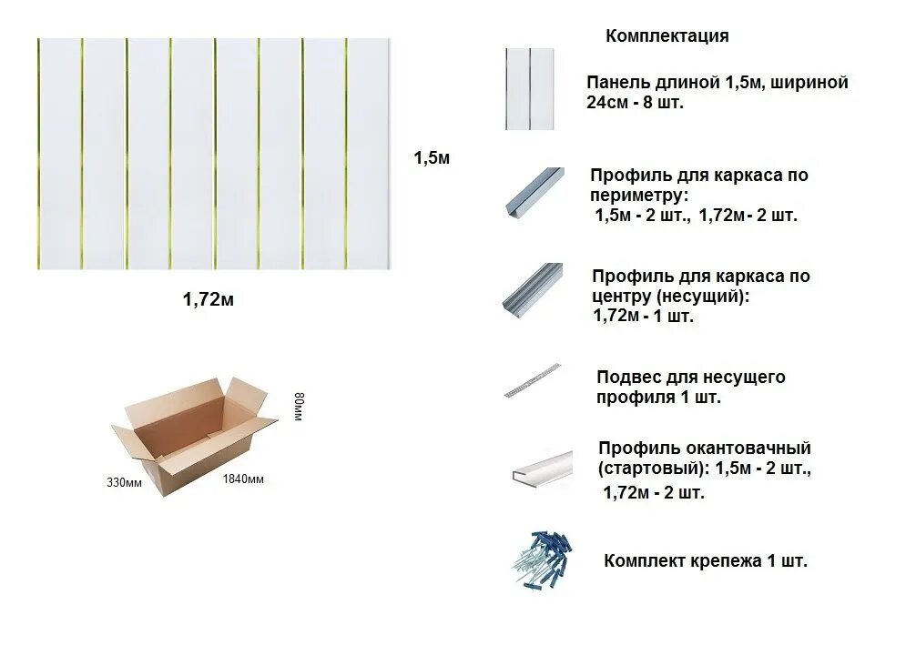 Потолок из ПВХ панелей в комплекте, 1.72x1.72 метра, белый глянец/золото информация: