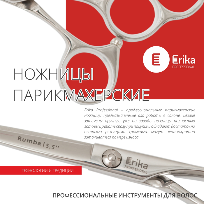 Ножницы ERIKA TANGO 02 прямые 5,5" информация:
