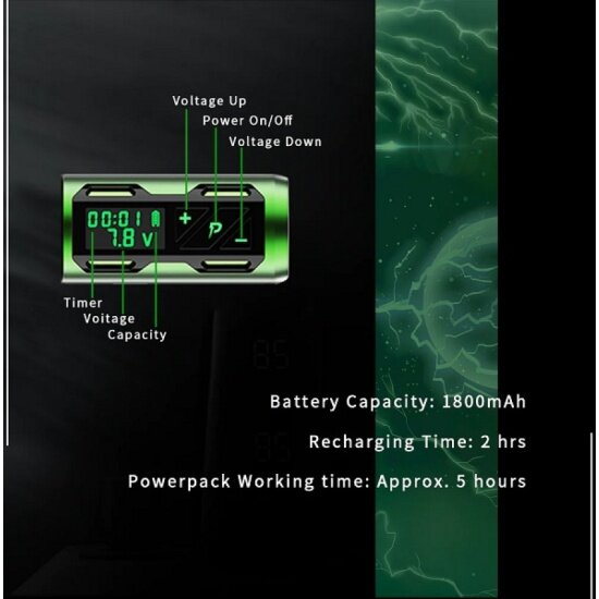 Беспроводная тату машинка EZ P3 PRO Matte Black с регулируемым ходом иглы и 2 акккумуляторами