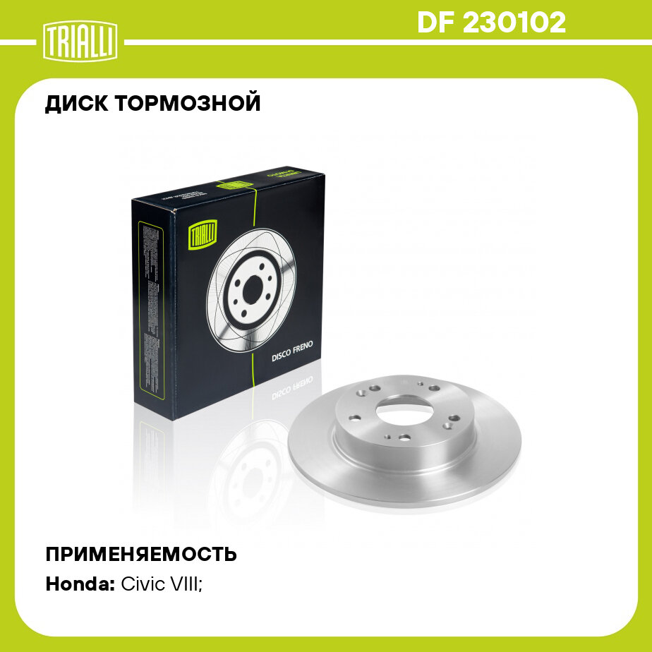 Диск тормозной для автомобилей Honda Civic VIII (06-) задний d=260 DF 230102 TRIALLI информация: