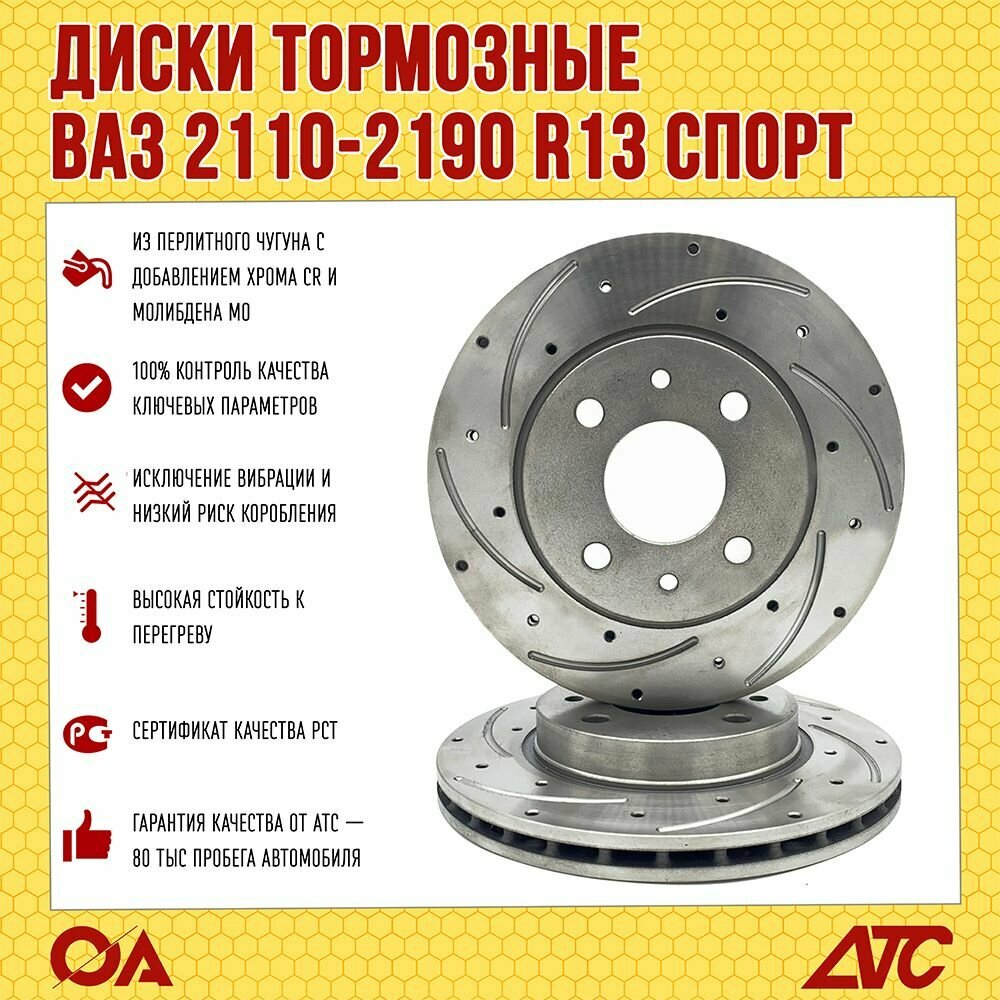 10 цен на Диски тормозные Гранта Калина ВАЗ 2110, Гранта, Калина R13 Спорт передние вентилируемые ATC (к-т 2шт)