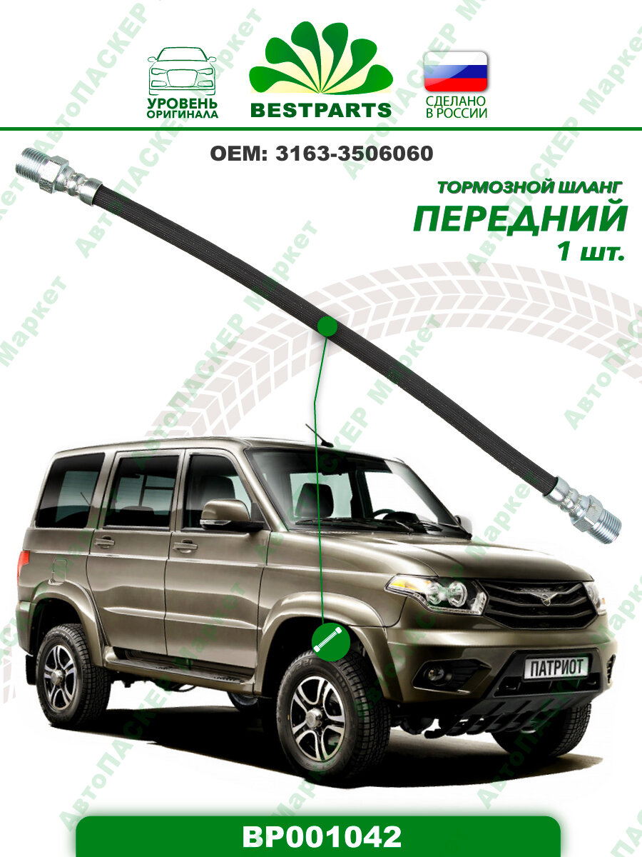 Отзывы на Шланг тормозной передний, средний, 400мм, для автомобиля УАЗ 3163 Патриот, гибкий, 1 штука, BP001042, 42963