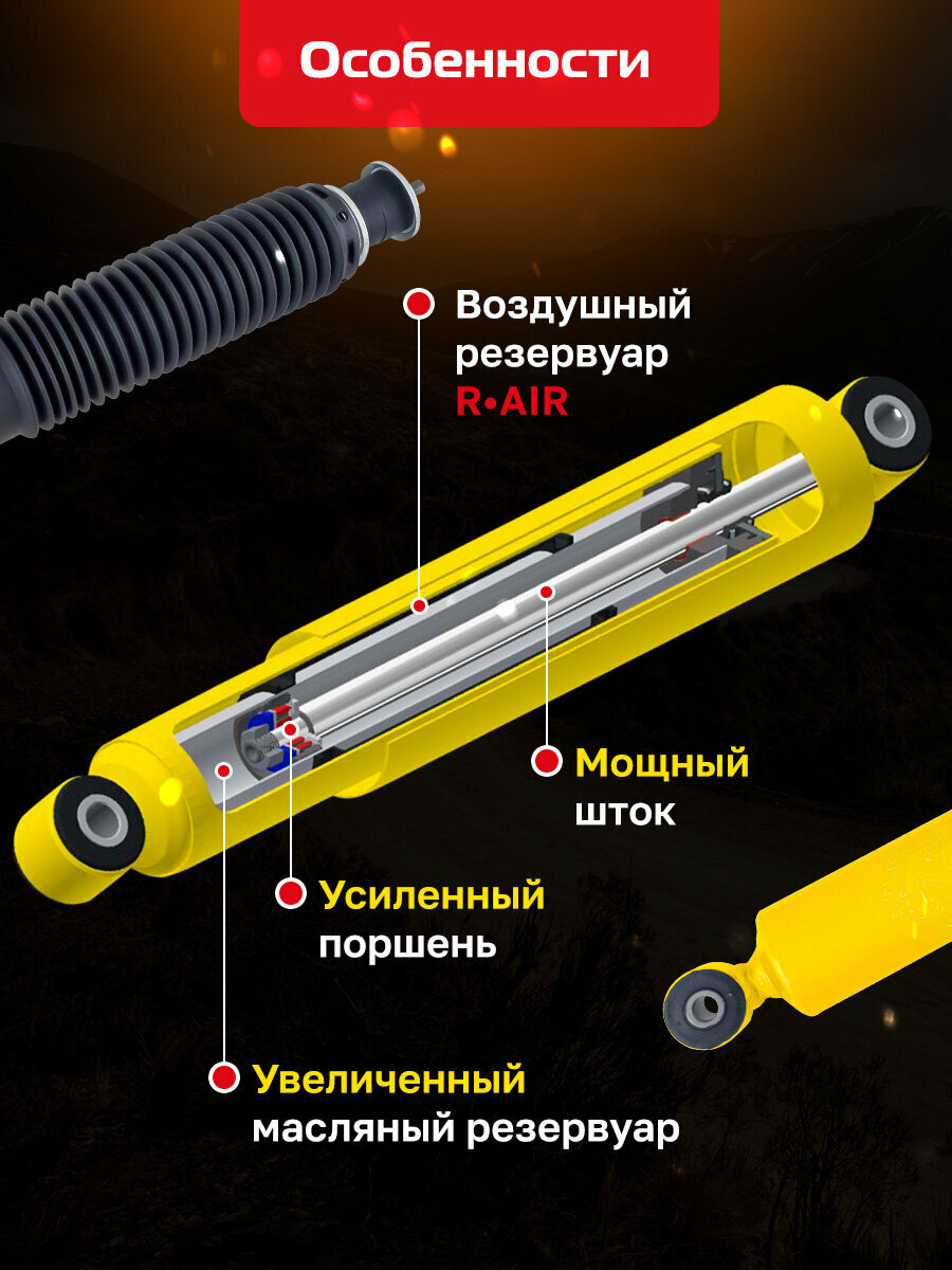 Амортизатор усиленный РИФ передний Ssang Yong Rexton 1,2, XVT, Kyron усиленный штатный и лифт 30 мм