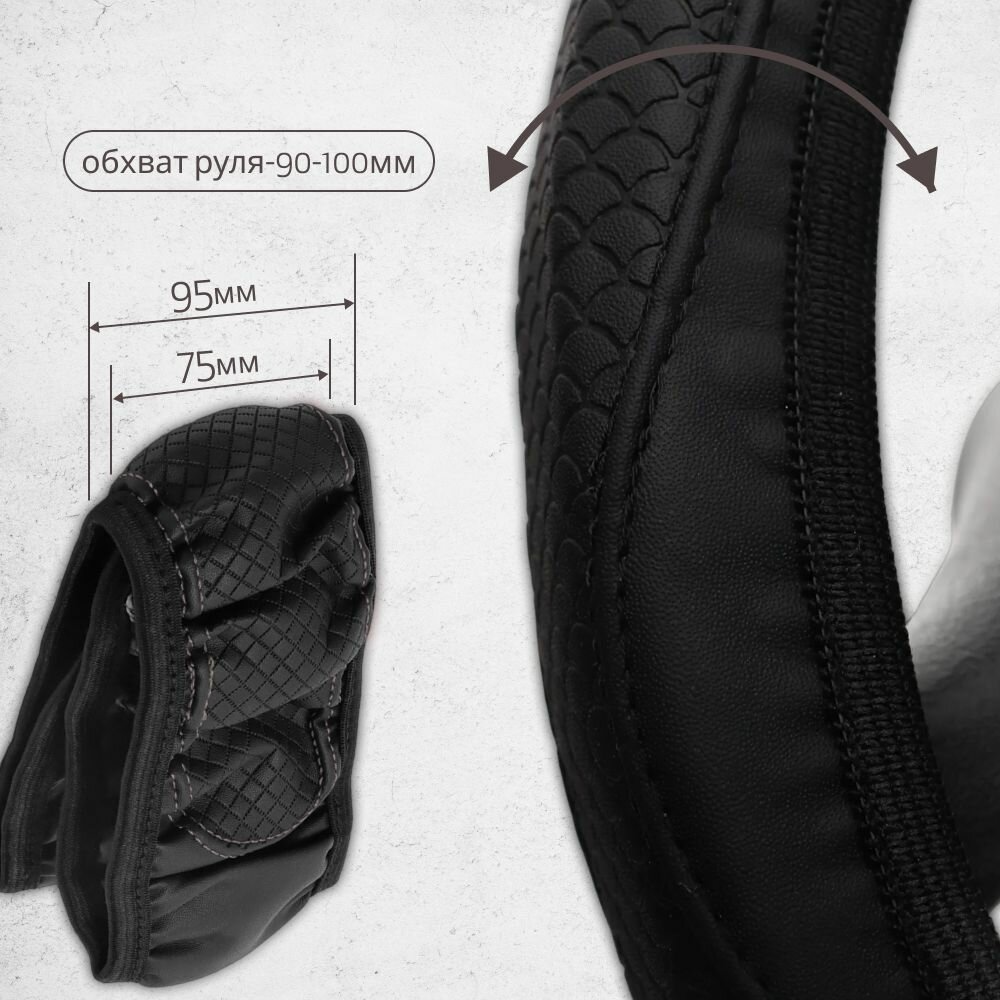 Оплетка на руль универсальная из экокожи «CARBON» М 37-39 см (чёрная, строчка чёрная) belais #21608