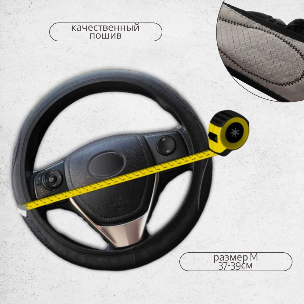 Оплетка на руль Top-12 SKYWAY M (37-39) серый экокожа, S01102501