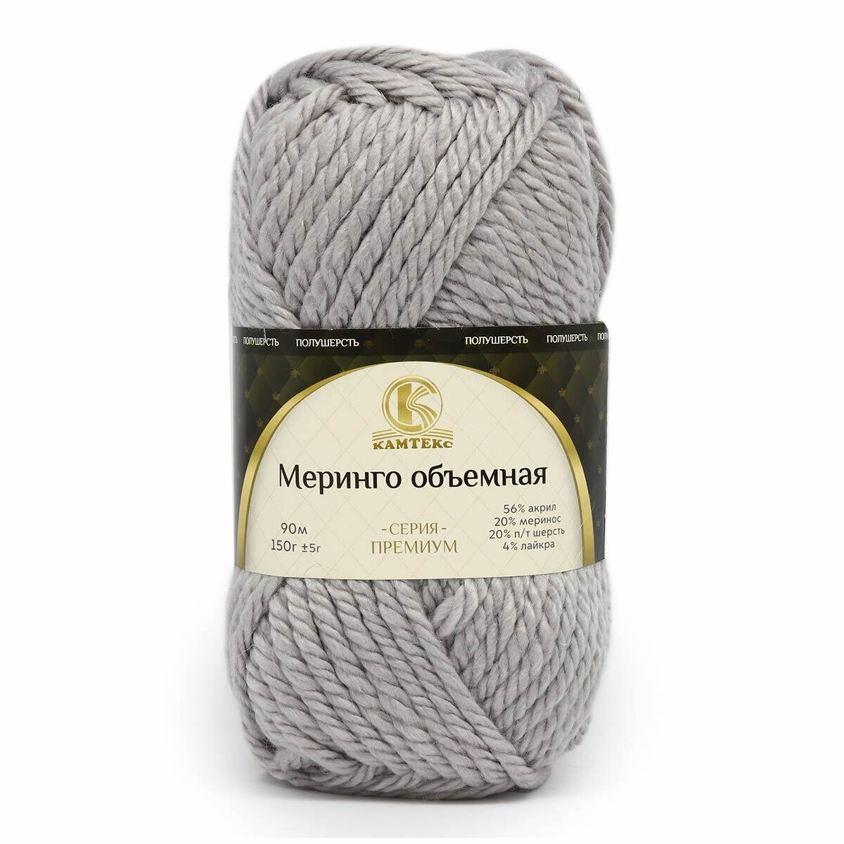 Пряжа для вязания Камтекс 'Меринго объемная', 150г, 90м (20% меринос, 20% полутонкая шерсть, 56% акрил, 4% лайкра) (168 светло-серый), 4 мотка 1 742 ₽