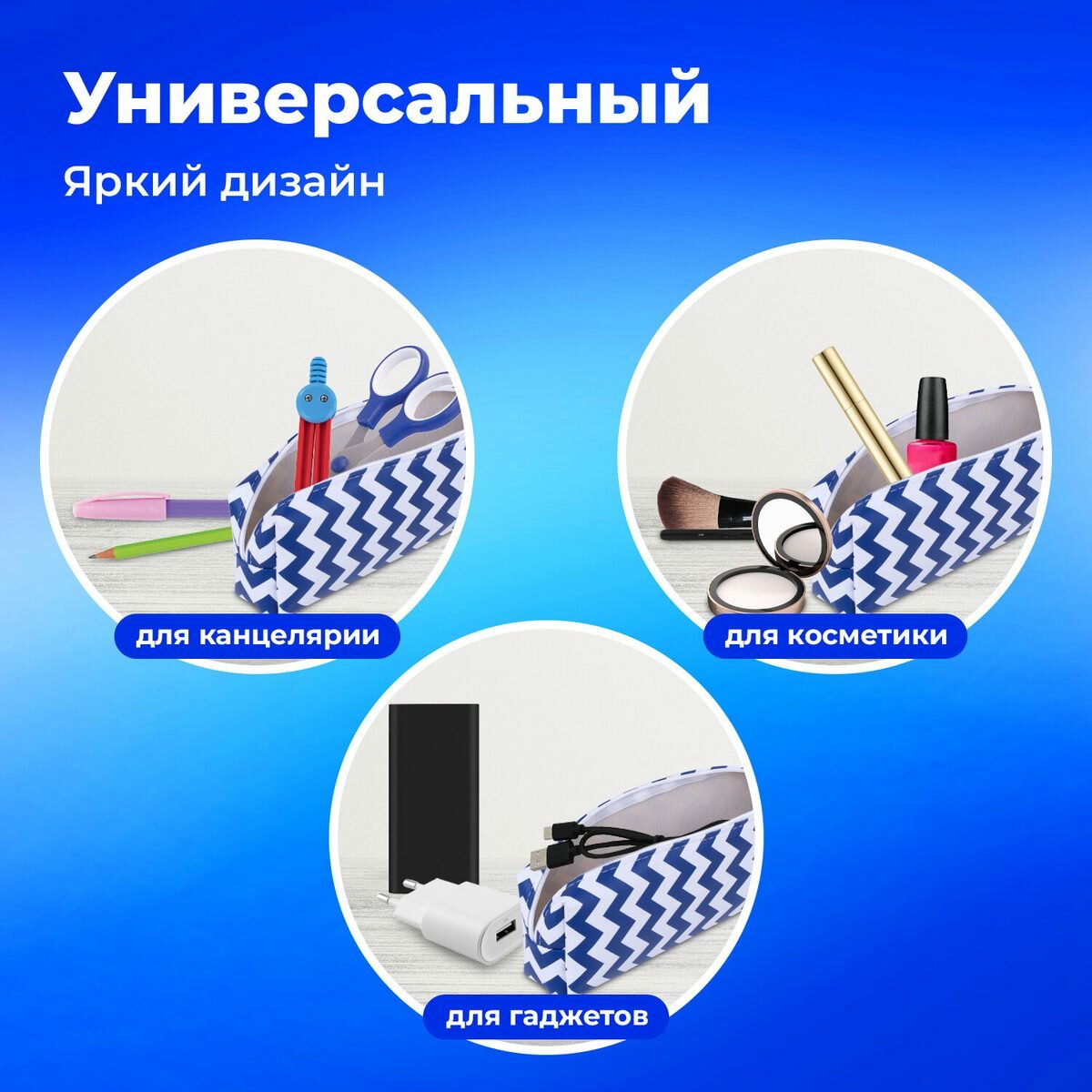 10 цен на Пенал-косметичка Пифагор "Wave", мягкий прямоугольный, 20х7х4см, 8шт. (229264)