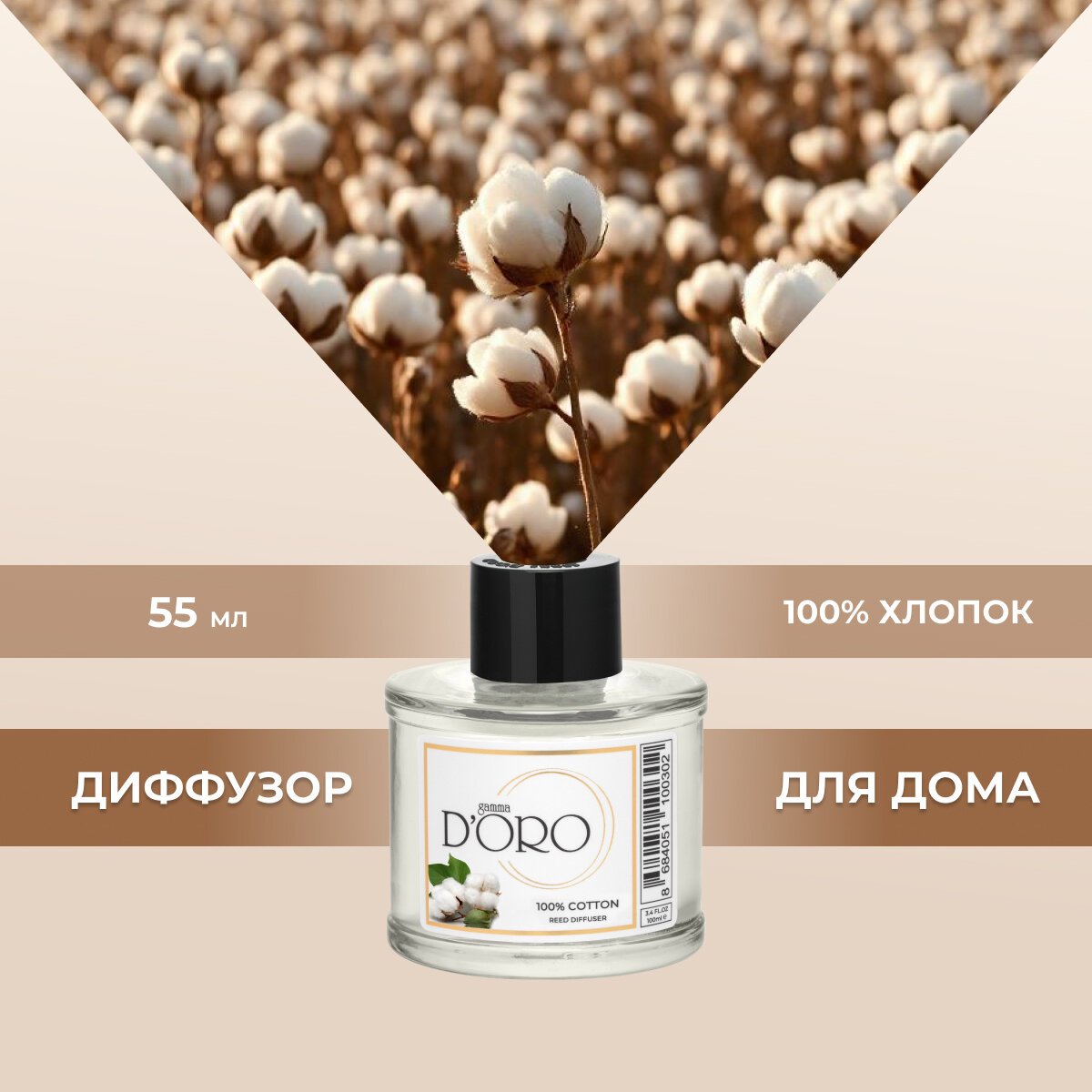 Ароматический диффузор для дома с палочками GAMMA D’ORO 100% Хлопок 55 мл информация: