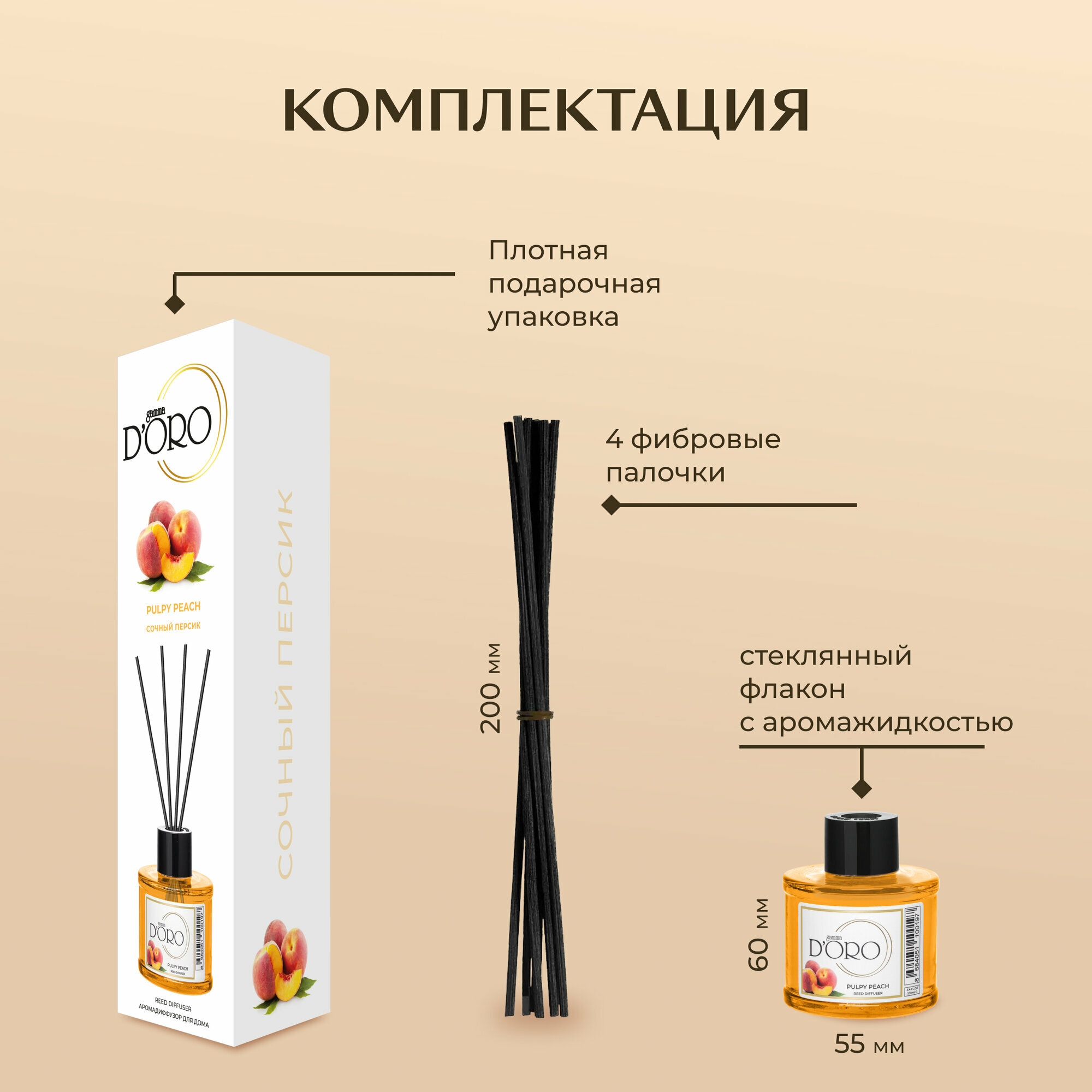 Диффузор для дома Gamma D'Oro Сочный персик 55 мл, аромадиффузор с палочками, ароматизатор освежитель воздуха 890 ₽