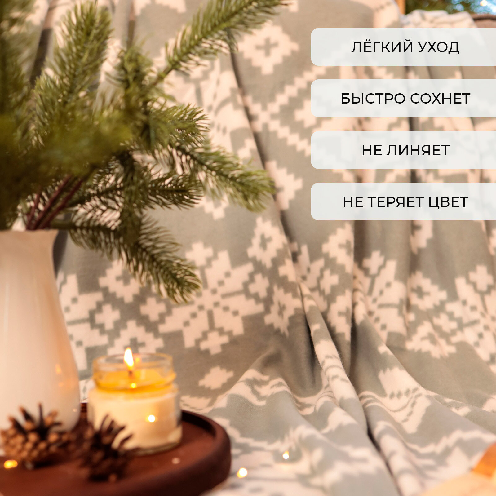 Новый год. Плед Экономь и Я "Скандинавия" 150*130см, пл.160 г/м2, 100% п/э