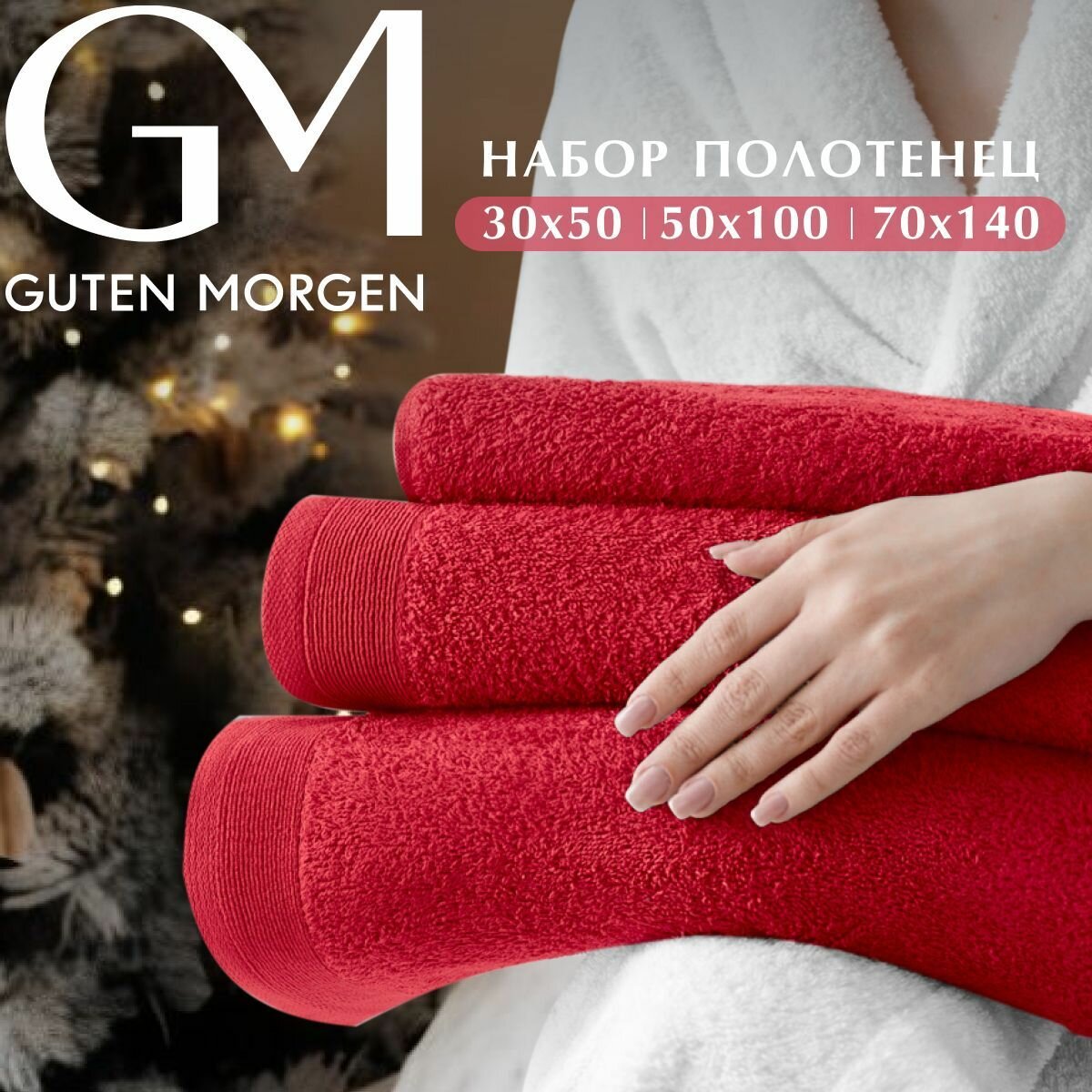 Набор полотенец махровых, Guten Morgen 3 шт. 30х50, 50х100, 70х140, хлопок 100%, 500 г/м2, Красный 1 293 ₽