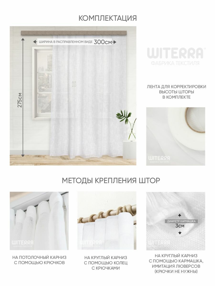 Штора тюль Witerra Вилладж под лен, на шторной ленте, для потолочного и круглого карнизов, 275х300 см, 1 шт. 4 567 ₽