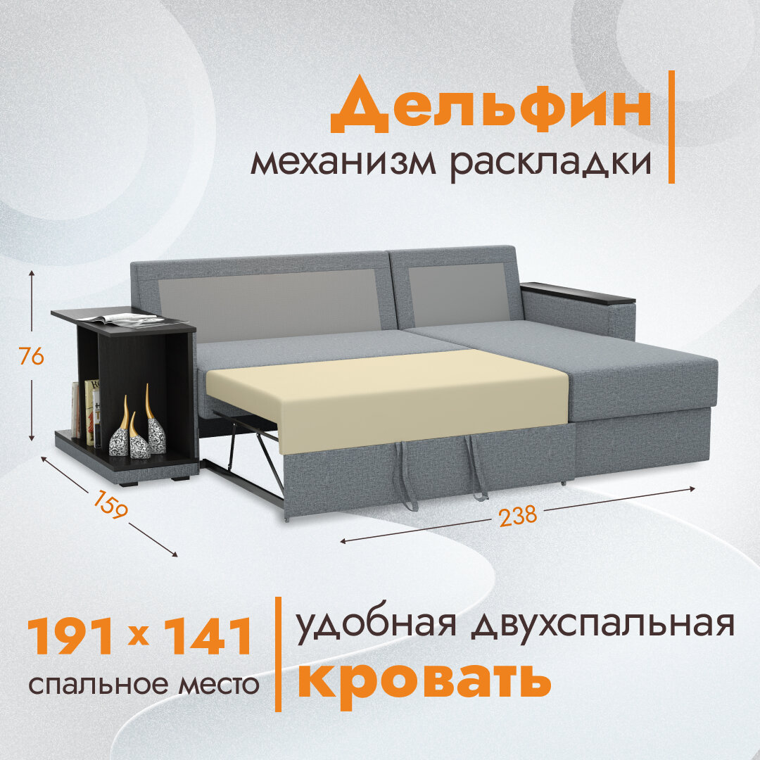 Диван-кровать Софос "Турин", диван угловой со столиком, 238x159x76, серый информация: