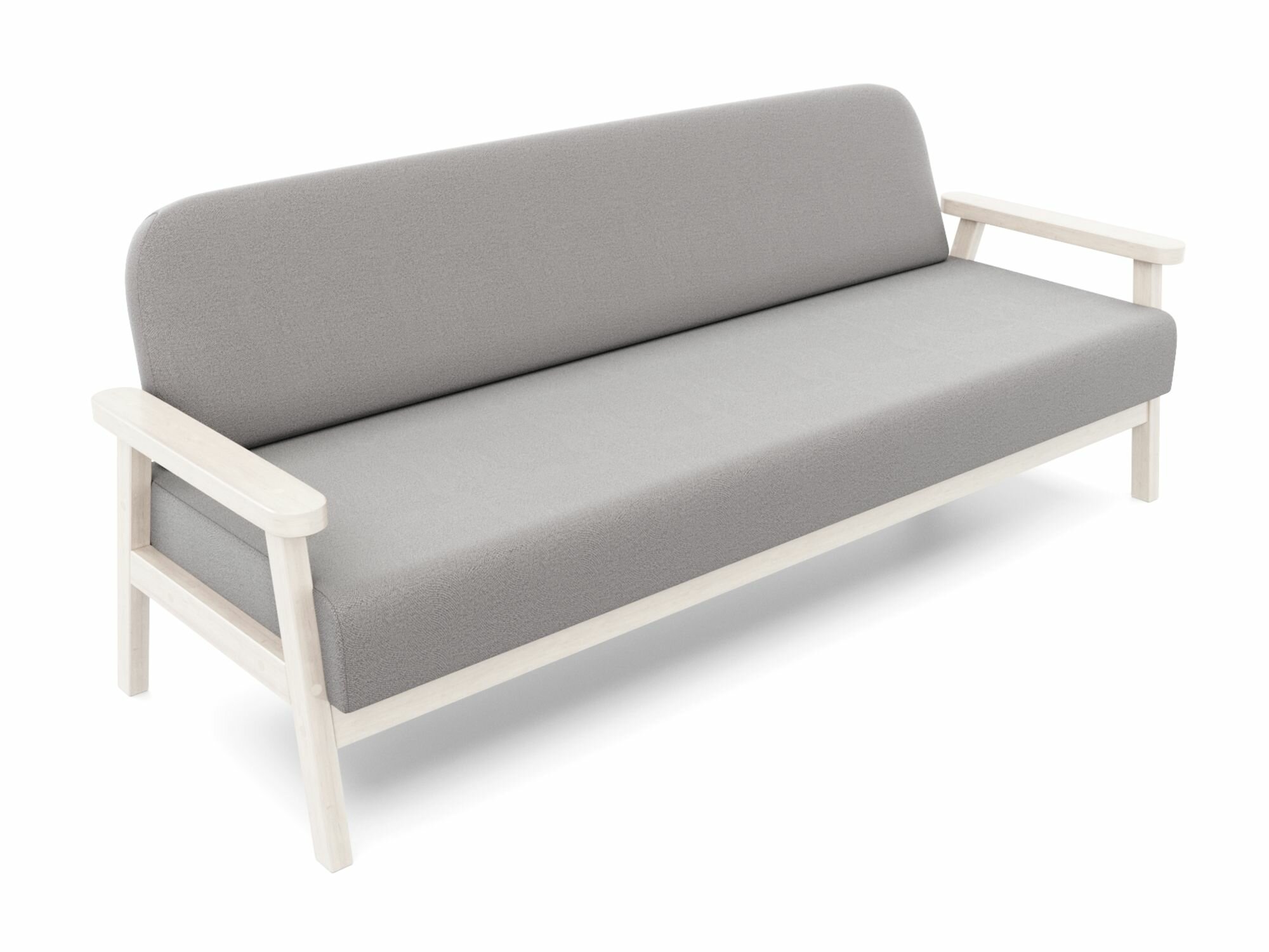 Прямой диван флори-б серый-беленый дуб, велюр, деревянный, трехместный, офисный, в гостиную, на ножках, скандинавский лофт
