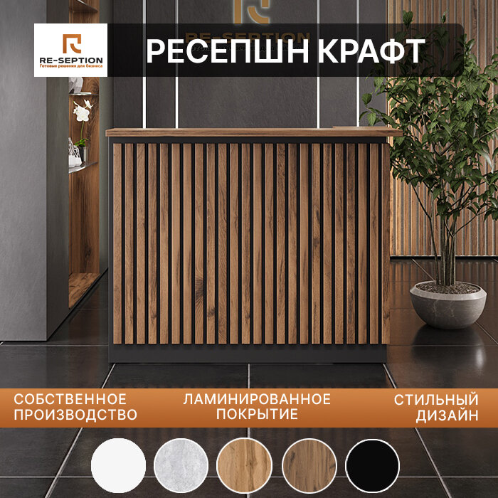 10 цен на Стойка Ресепшн Крафт Черная/Юстус / ЛДСП/ Для администратора/Дизайнерская/Черный/ 120х120х60см/Без Подсветки