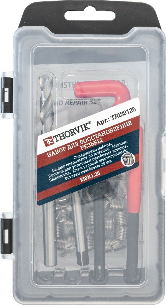 Набор для восстановления резьбы M9x1.25, 25 предметов, TRIS9125, Thorvik информация: