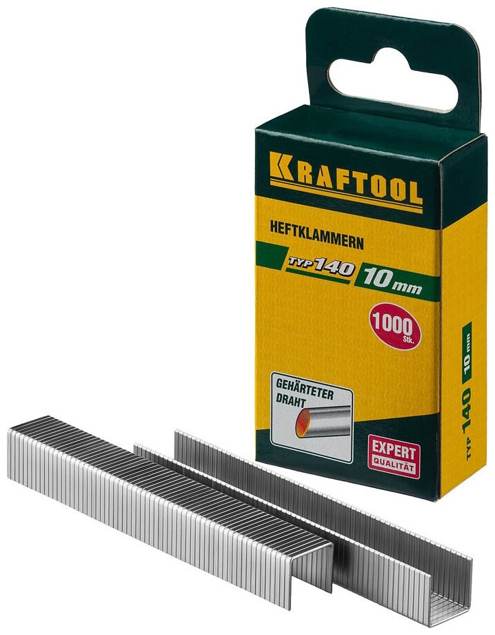 KRAFTOOL 10 мм скобы для степлера плоские тип 140 (G / 11 / 57), 1000 шт, супертвердые, 31680-10 информация: