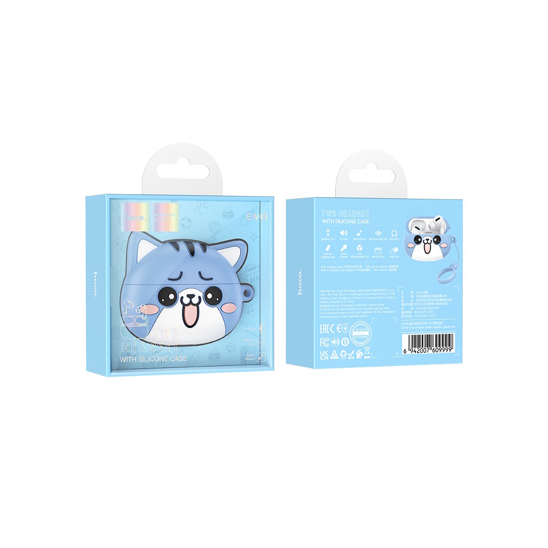 TWS гарнитура HOCO EW48 BT 5.3, внутриканальная (голубой), кейс "Котик" с брелоком информация: