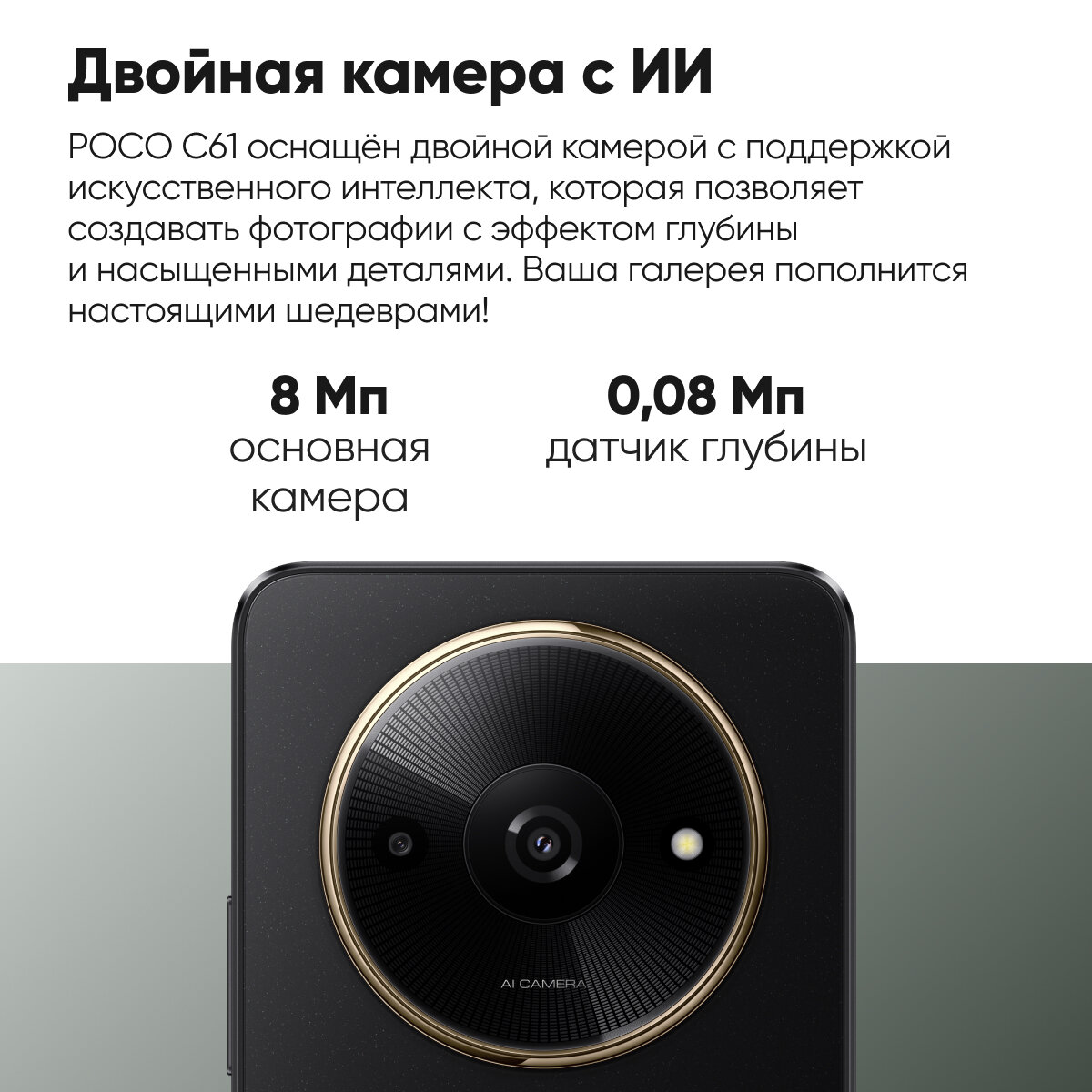 Смартфон POCO C61 4GB+128GB, Green, Dual nano sim, Ru Официальная гарантия. 10 899 ₽