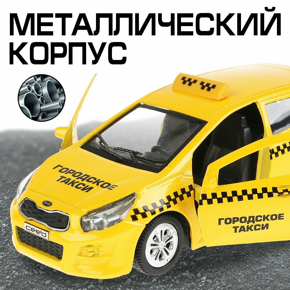 Машинка детская Такси KIA Ceed 12 см, Технопарк, желтая, открываются двери и багажник, металлический корпус информация: