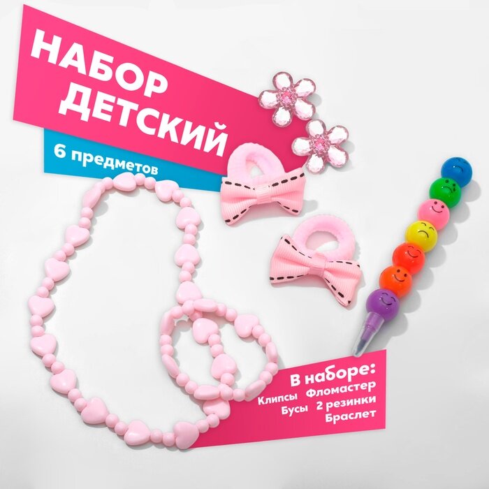 10 цен на Набор детский "Выбражулька" 6 пред-в:бусы,браслет,клипсы,2резинки,карандаш, котёнок, цветной 76735