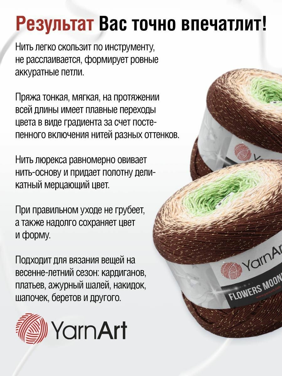 10 цен на Пряжа для вязания YarnArt 'Flowers Moonlight' 260г, 1000м (хлопок, полиакрил, металлик) (3272 секционный), 2 мотка