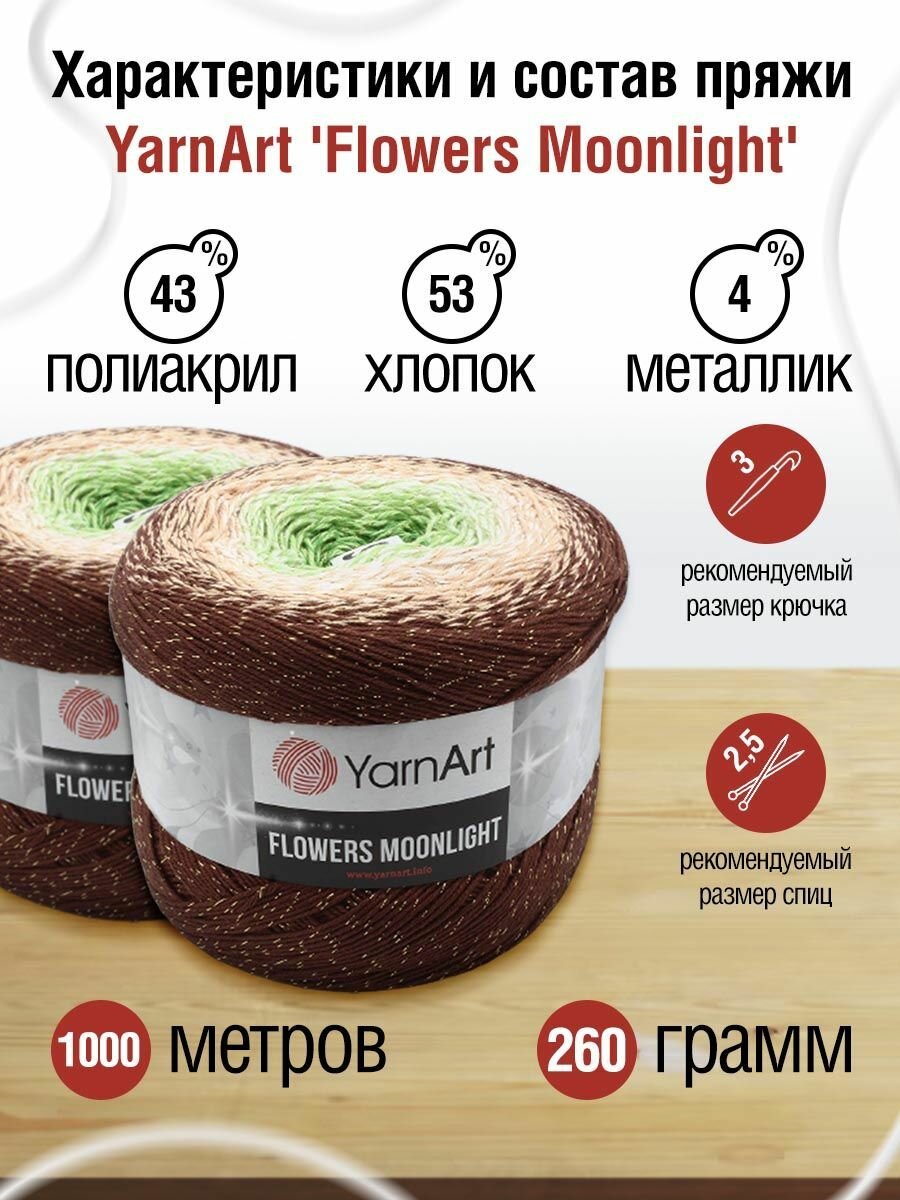 Пряжа YarnArt Flowers Moonlight коричневый-бежевый-медовый (3284), 53%хлопок/43%акрил/4%металлик, 1000м, 260г, 2шт