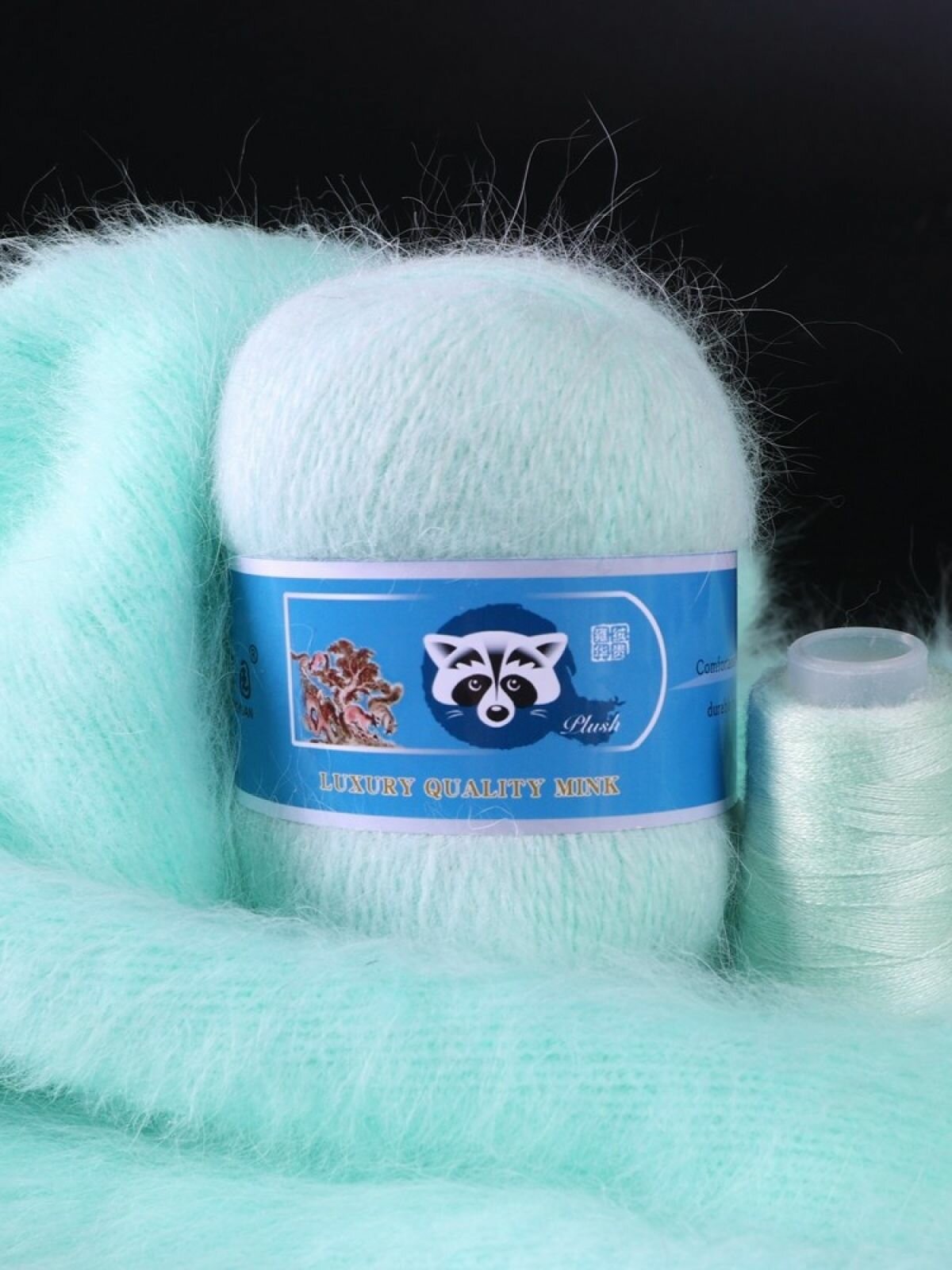 Пряжа Пух норки - 5 мотков 50гр/350м + 5 мотков добавочной нити, цвет 862 светло-бирюзовый , синяя этикетка 1 553 ₽