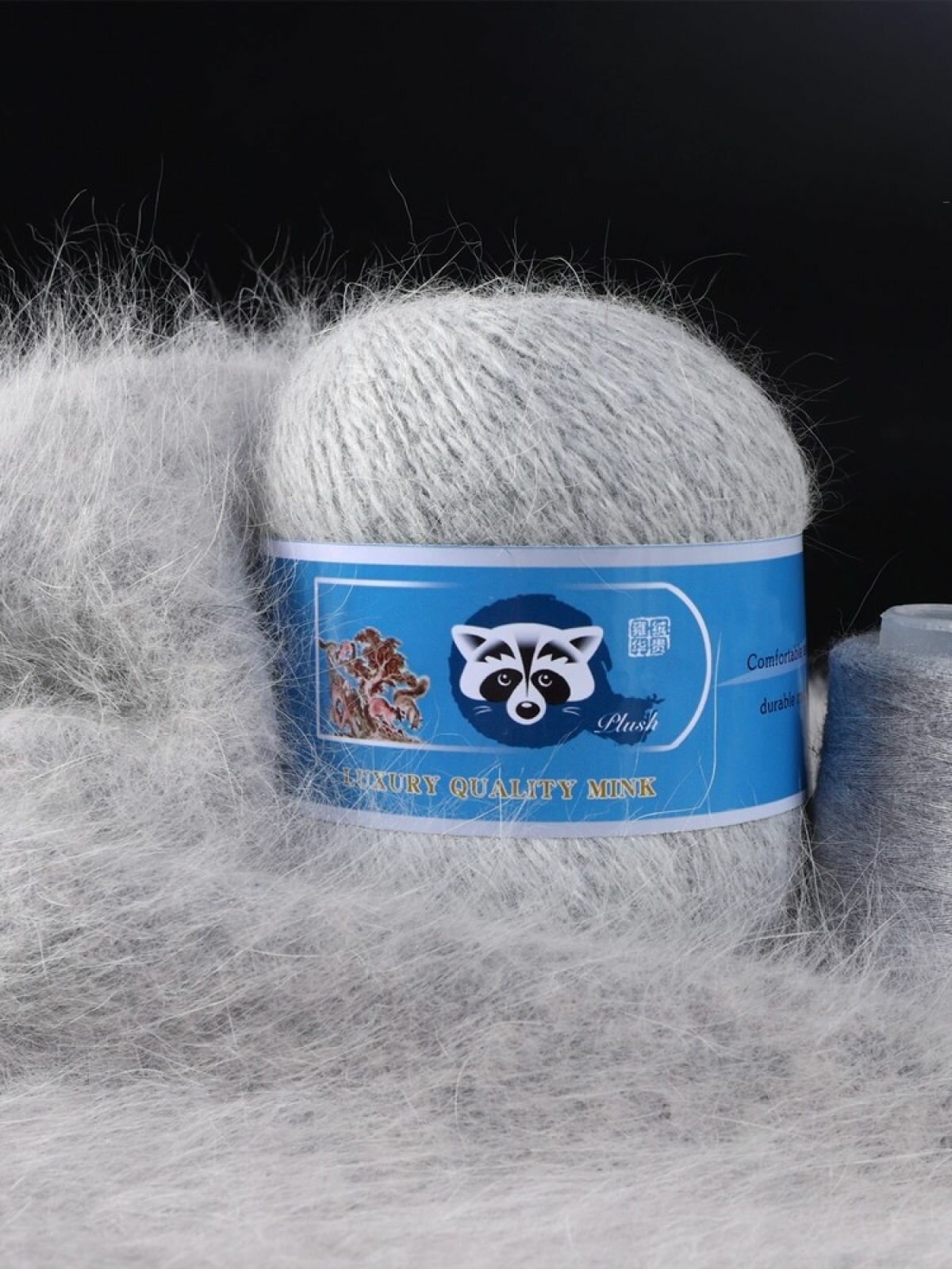 Отзывы на Пряжа Пух норки - 5 мотков 50гр/350м + 5 мотков добавочной нити, цвет 802 светло-серый меланж, синяя этикетка