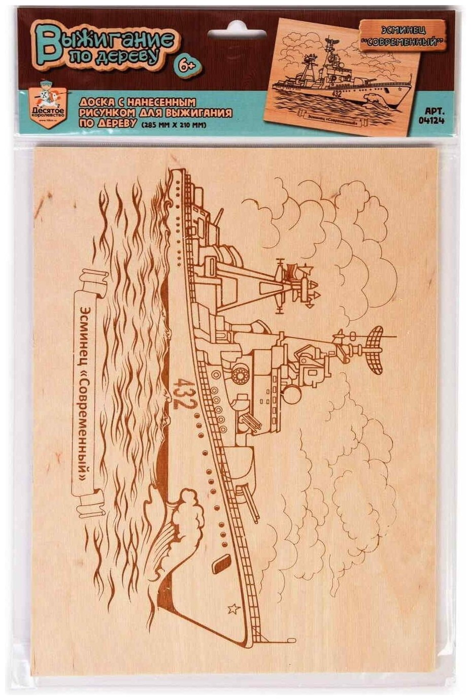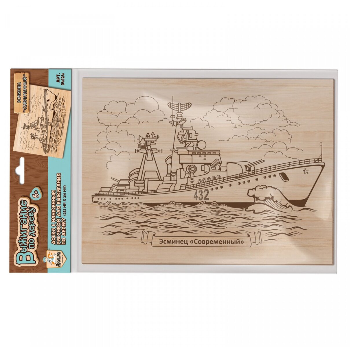 Выжигание По Дереву Доска с нанесенным рисунком. Эсминец "Современный" (28,5*21см, в пакете, от 6 лет) 04124, (ООО "Десятое королевство")