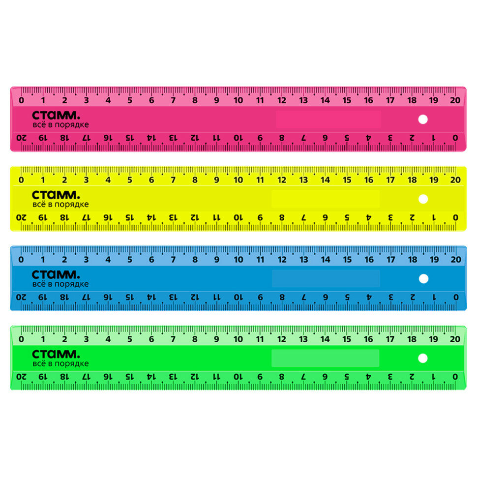 10 цен на Линейка 20см Стамм, пластиковая, 2 шкалы, непрозрачная, неоновые цвета, европодвес (ЛН-31238)