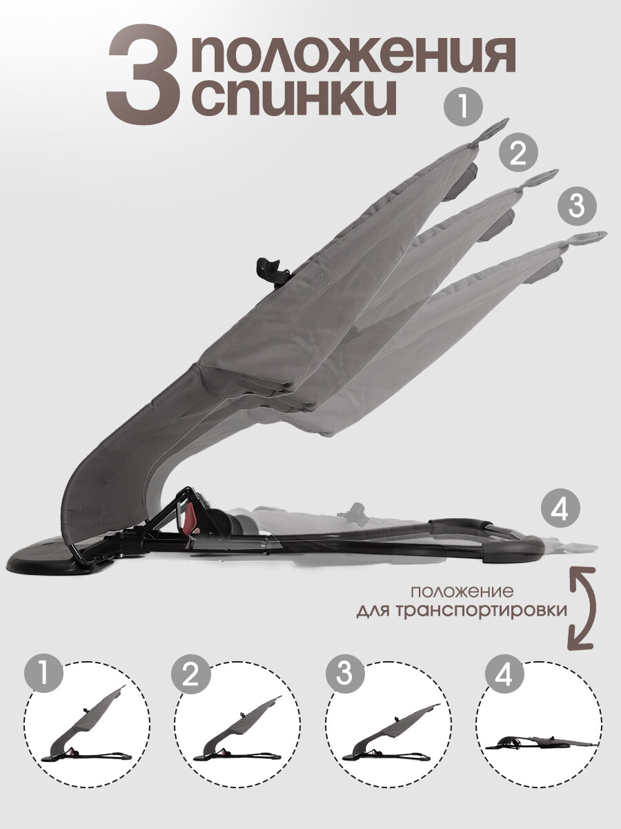 Детский складной шезлонг CINLANKIDS для новорожденных кресло качалка для малышей от 0 с игрушкой дугой, серый информация: