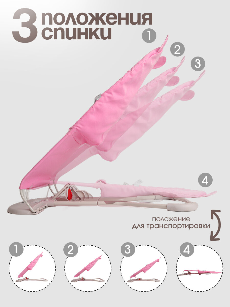 Детский складной шезлонг CINLANKIDS для новорожденных кресло качалка для малышей от 0 с игрушкой дугой, розовый информация:
