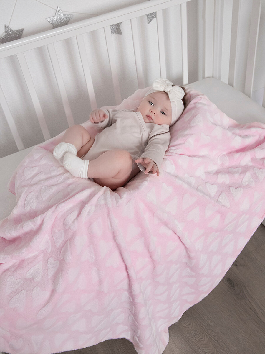 Плед для новорожденного 100х140 пушистый детский в кроватку коляску, "Сердечки" , розовый информация: