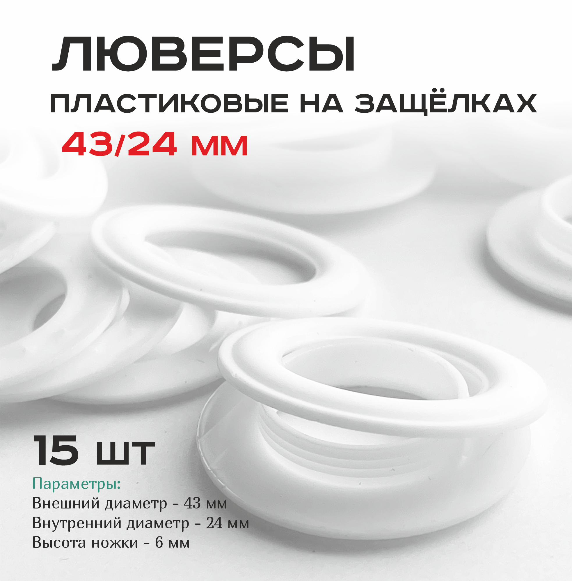 10 цен на Люверсы пластиковые для штор, большие белые 43/24 мм на защелках, 15 шт