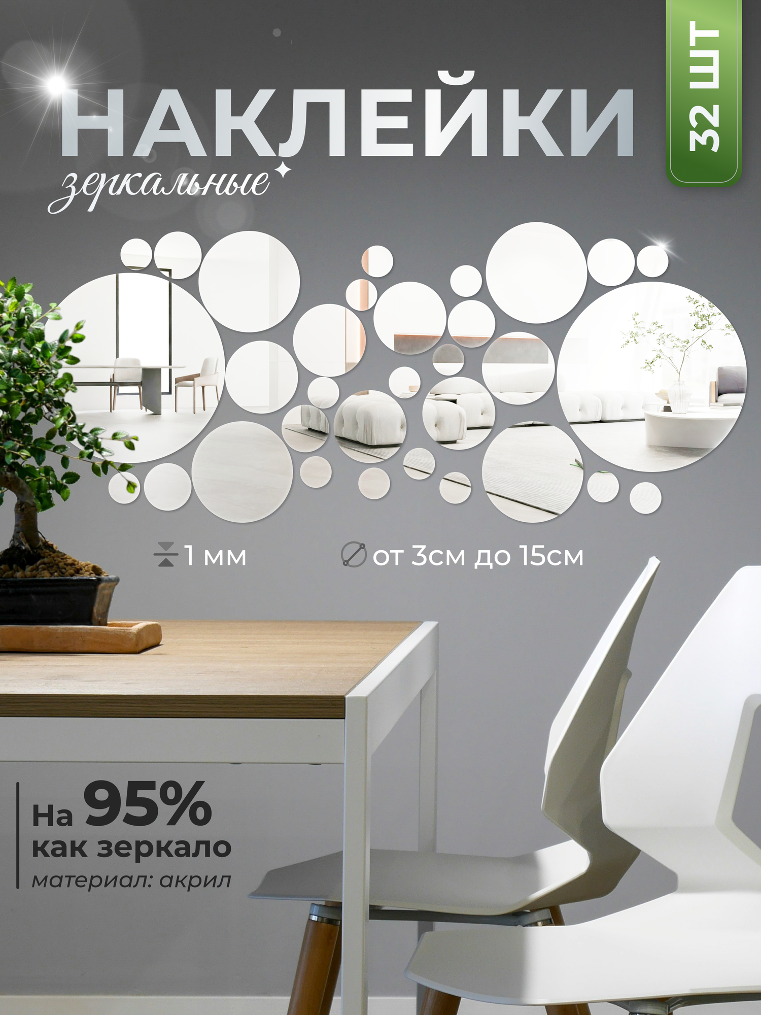 Отзывы на Зеркальные наклейки Имидж Дом "Круги", акриловые, серебристые, влагостойкие, 32 шт