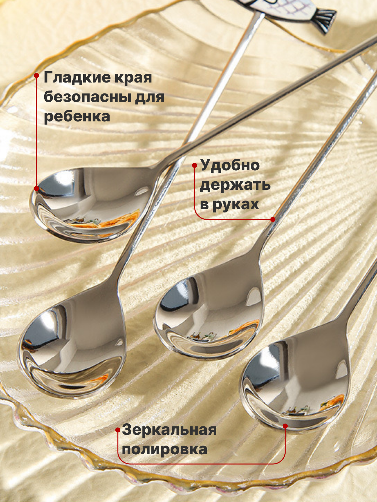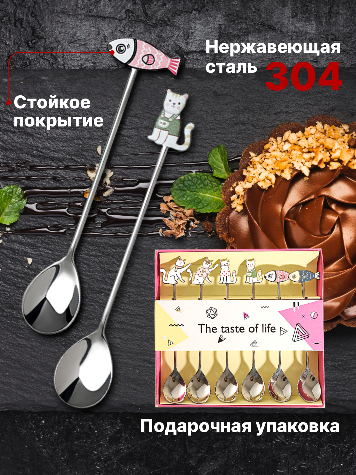 Отзывы на Набор чайных ложек для кофе десертные, с котиками и рыбками, 6 штук
