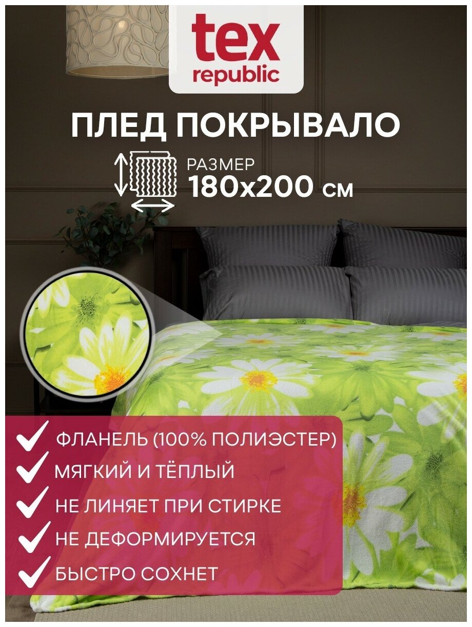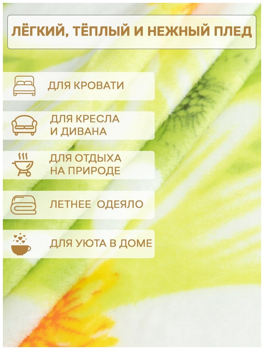 Плюшевый плед Ромашка 180x200см, 2-спальный, мягкий, тонкий, теплый, зеленое покрывало информация: