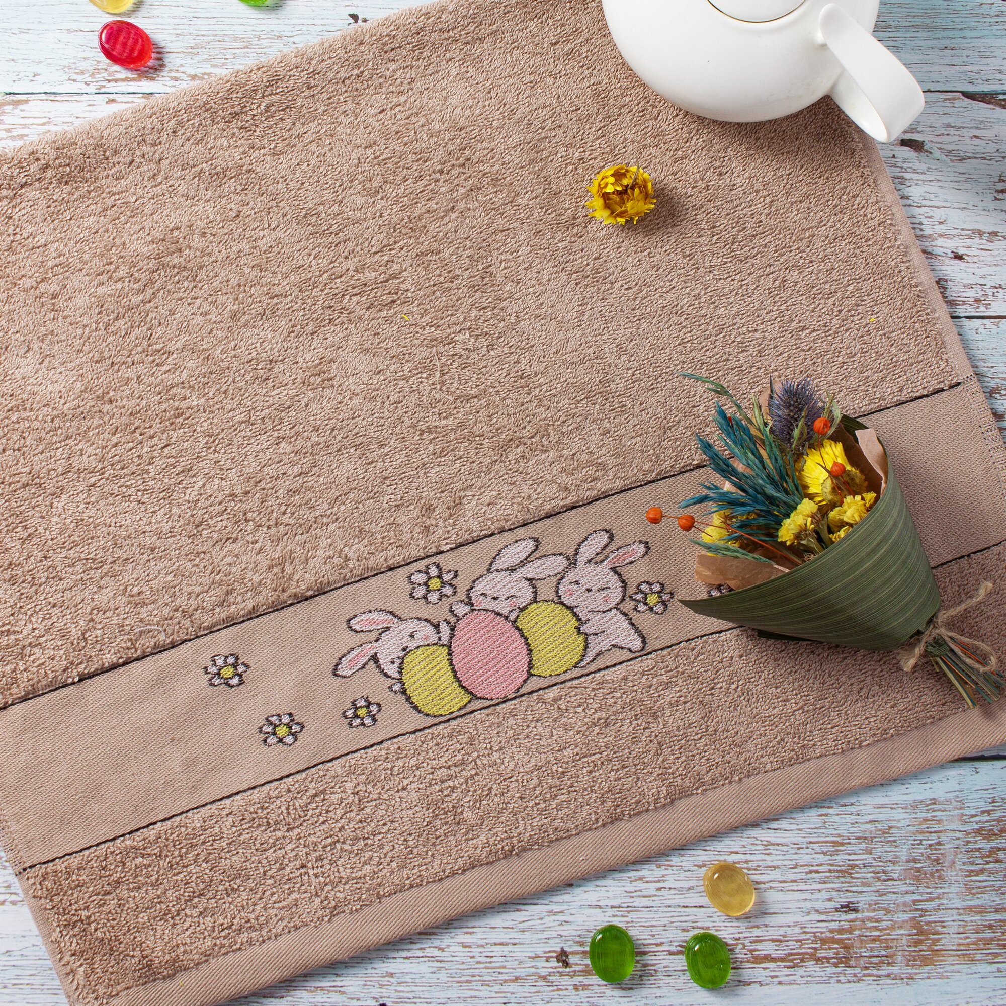 10 цен на Полотенца махровые кухонные 50х80 см, набор 2 шт, Китчен, команда зайчат / коричневые