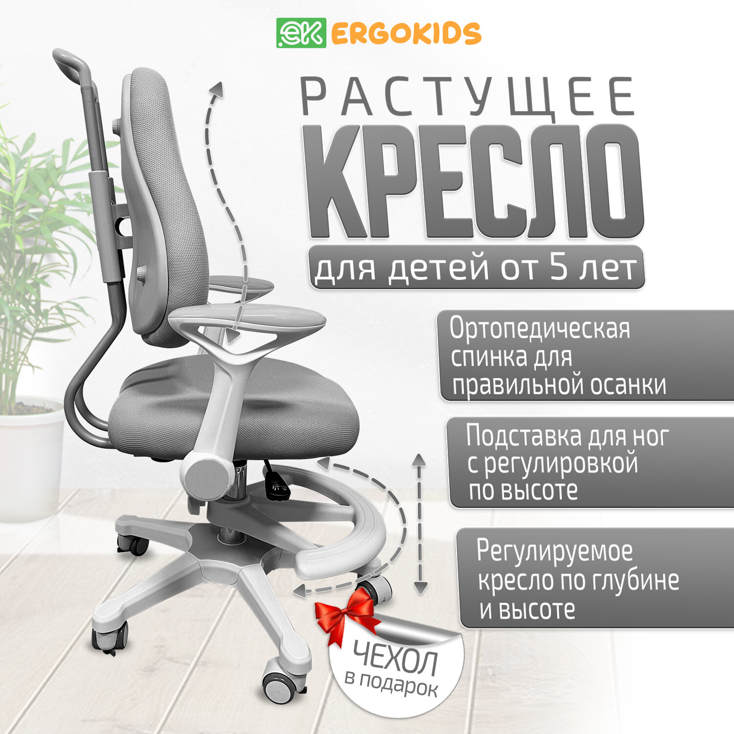 Растущее детское кресло для дома ErgoKids Y-507 KG Armrests (арт. Y-507 ARM / KG) с подлокотниками для обычных и растущих парт и чехлом информация: