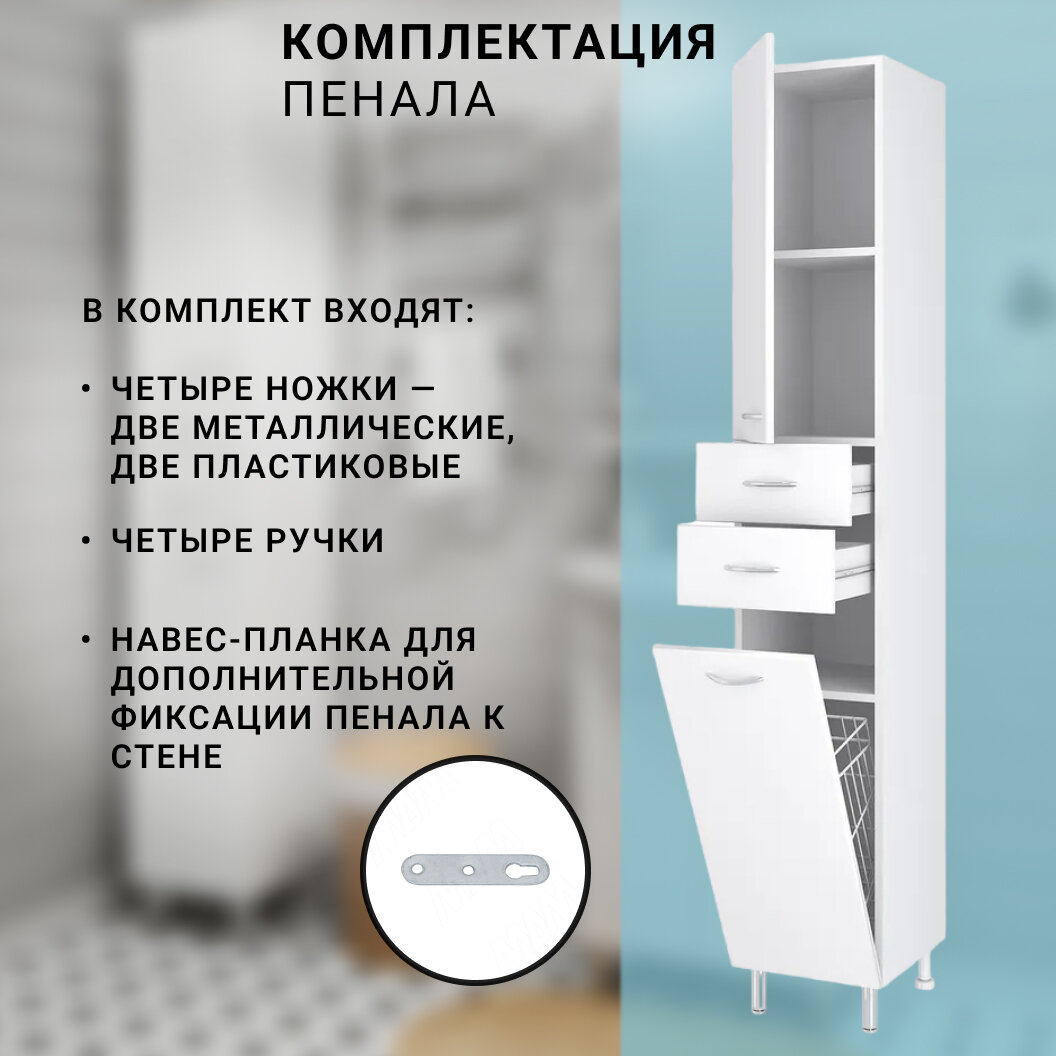 Пенал Runo Эконом 35х190 правый, с корзиной для белья, белый (00000000130) 15 560 ₽