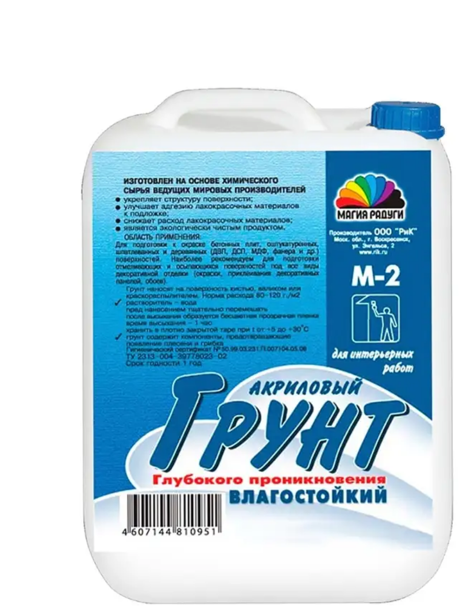 Грунтовка глубокого проникновения для внутренних работ Магия Радуги М2, бесцветная, 10 л информация:
